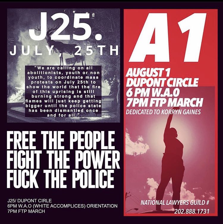 Friday July 24 and Saturday, July 25, people will be protesting across the country in solidarity against the federal invasion/occupation of Portland and the Fanta Fuhrer's promise to take his violent campaign road show to other cities. Look for an event in your town (PNW Youth Liberation Front is tracking/listing them) and go. Wear your mask. Study the safety protocols available online and abide by them. Do not bring your phone (it allows you to be tracked) or anything else you can't afford to have the police steal. Do not take photographs showing protesters faces, but do photograph the criminal activities of cops and feds.
